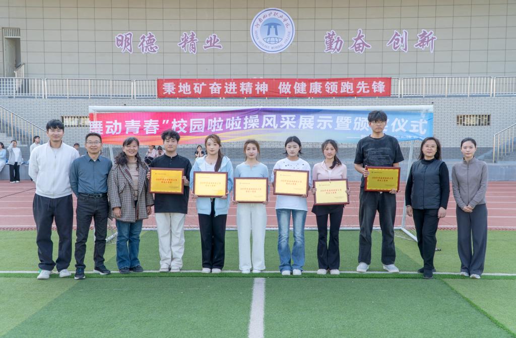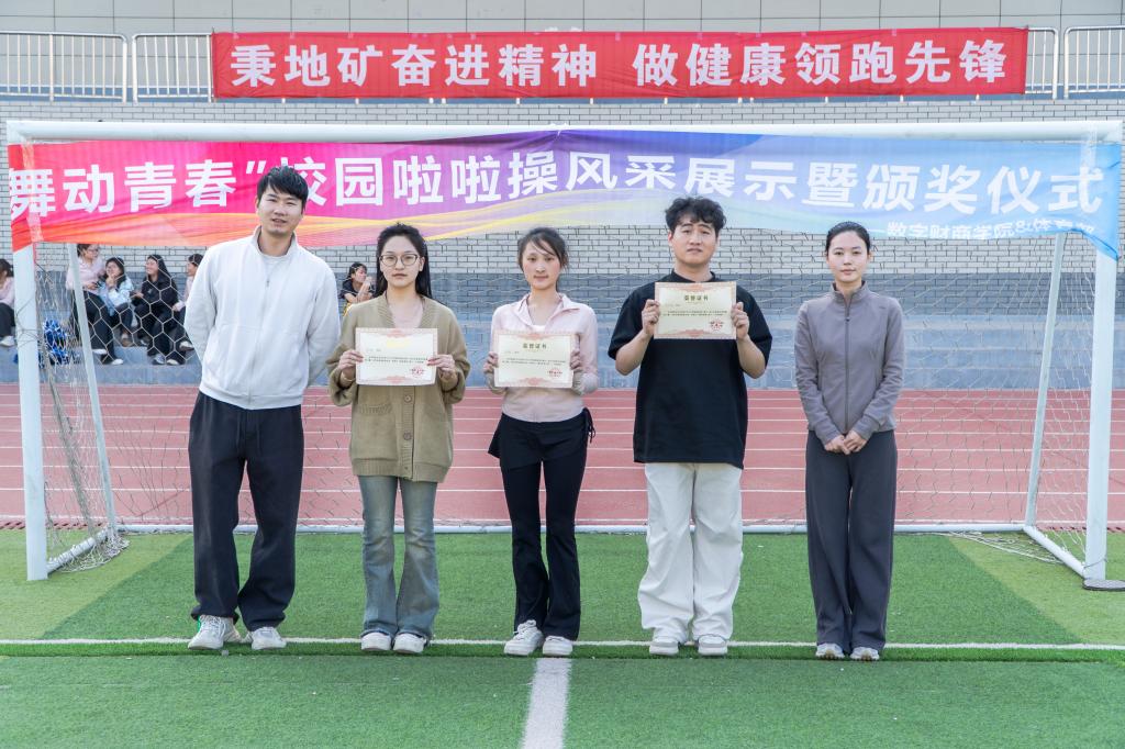 4月1日下午,我校体育部与数字财商学院联合举办的2025年校园啦啦操大赛汇报演出暨颁奖仪式在我校足球场顺利举行。体育部副主任赵亮、数字财商学院院长张言雄、数字财商学院书记吴琼艳出席活动现场,与全体参赛选手、指导教师及师生代表共同观看汇报演出,并为获奖集体和个人颁奖,见证学子们的青春风采。